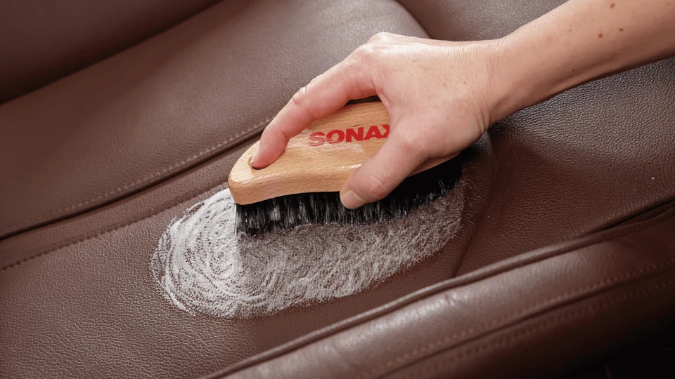 Temizleyiciyi bir tekstil ve deri fırçasına uygulayın.