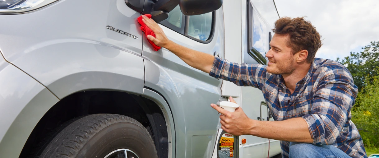 Karavanınızı uzun vadede hava koşullarından, UV ışınlarının neden olduğu solmalardan ve küçük çiziklerden korur . Karavan cilası rengi tazeler ve boncuklanma etkisi sayesinde daha az su lekesi ve siyah çizgi oluşur. Ve en iyi yanı: Karavanınızı kendiniz kolayca kapatabilirsiniz . Size nasıl yapacağınızı göstereceğiz.
